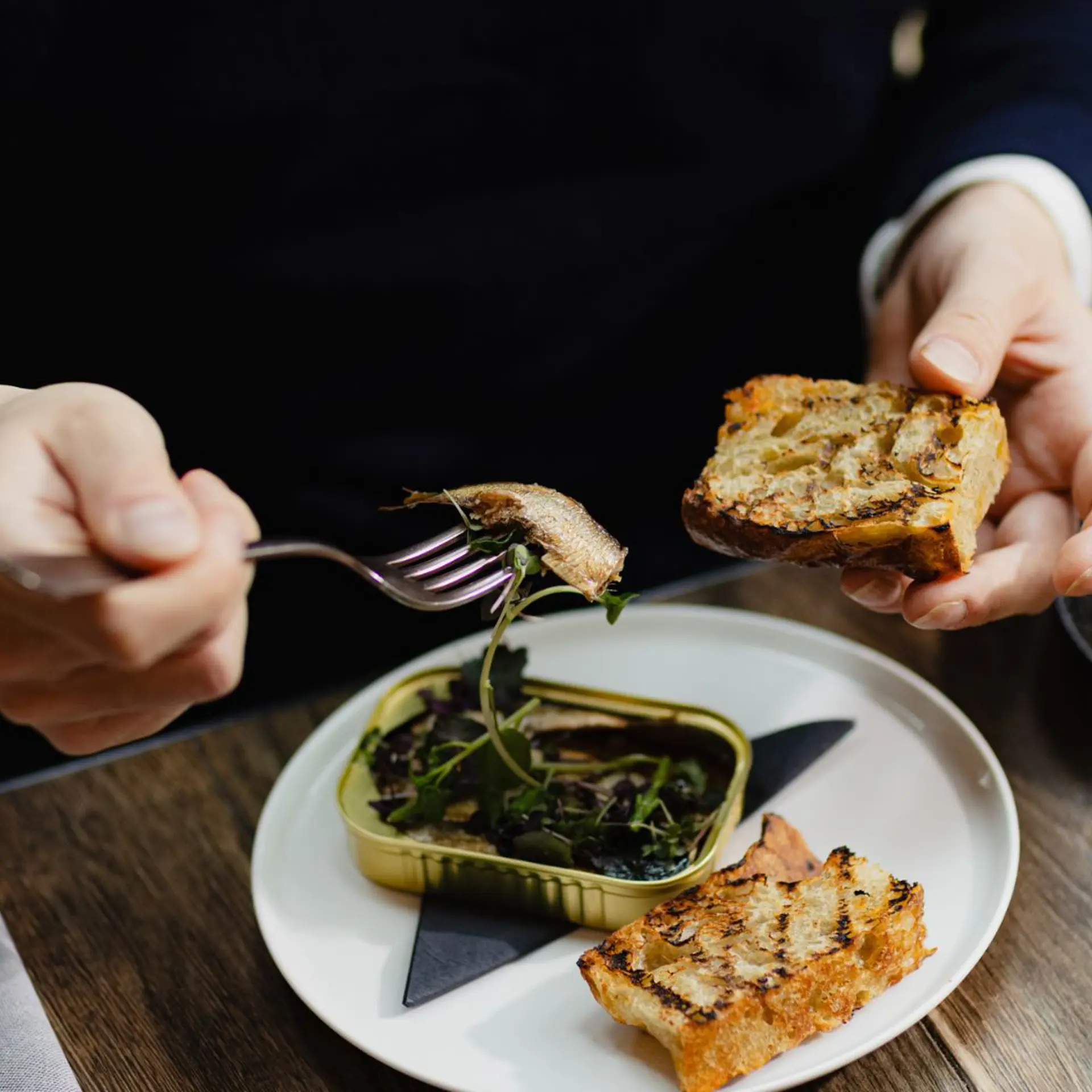 Nordiske sardiner på dåse, let røget med citron, krydderurter & brød